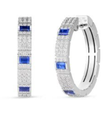 ROBERTO COIN 8883597AWERX 18K WHITE GOLD OBELISCO PAVE DIAMOND & BLUE SAPPHIRE HOOP EARRINGS